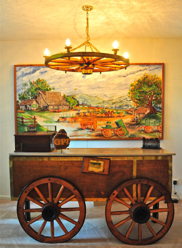 The greatest treasure in that buyout was hundreds of wagon wheels of all types and conditions. They fashioned a chandelier from a carriage wheel and created an amazing glass-topped table out of a large dray wheel to which they’d added legs made from welded-together horseshoes. They also made lamps out of some of the old wagon hubs, completing what I still consider one of the greatest tributes I’ve ever received.